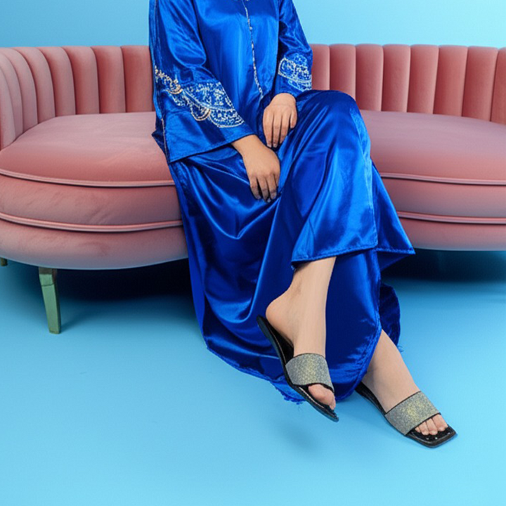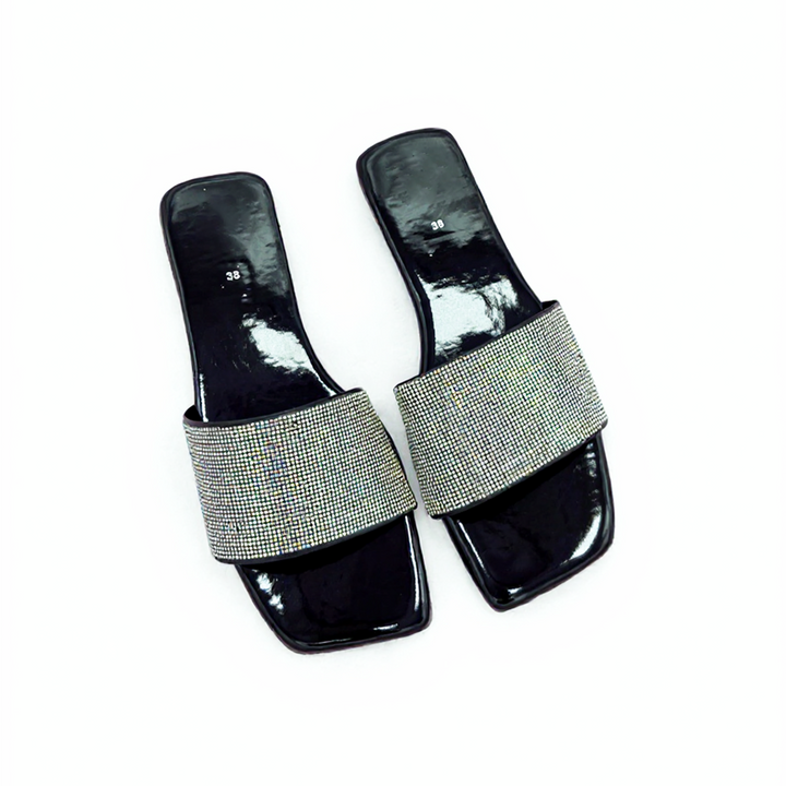 Step into sparkle with the Crystal Charm Flat—where comfort meets pure elegance. Designed with a sleek silhouette and adorned with shimmering accents, these flats bring a subtle yet captivating sparkle to your every step.