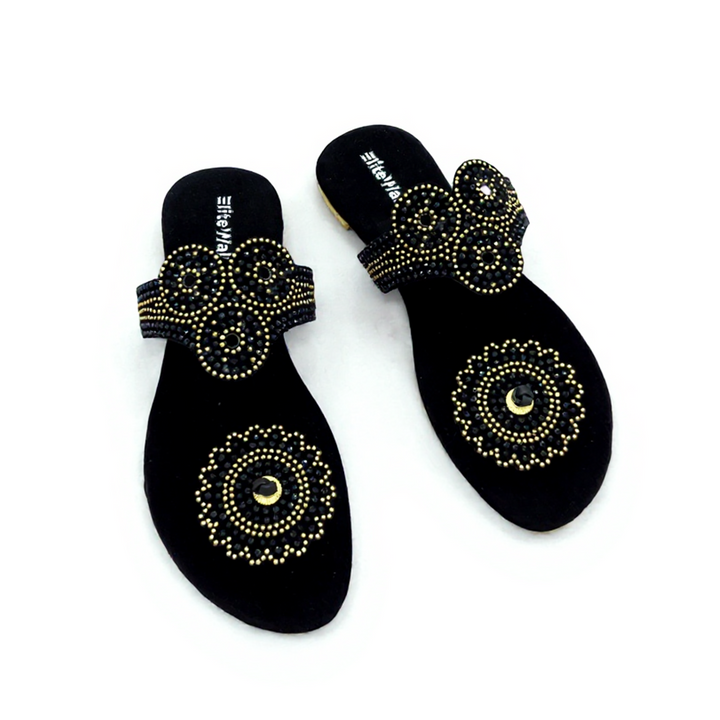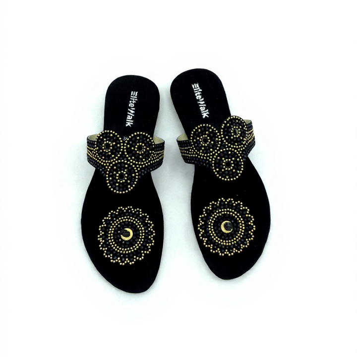 Traditional elegance meets modern charm—our Golden on Black Kolapuri is the perfect blend of heritage and style. With its rich black base and striking golden detailing, this pair adds a royal touch to any outfit.